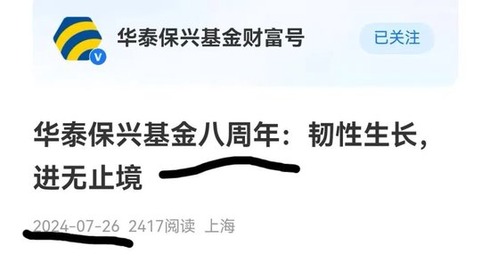 更为忍俊不住的,在“关于我们”的链接里是发布于2024年7月的华泰保兴八周年的贺岁文章。本猴不由得叹息,“任时光匆匆,小华你9岁了,不能依然栖于8岁的枝头”。